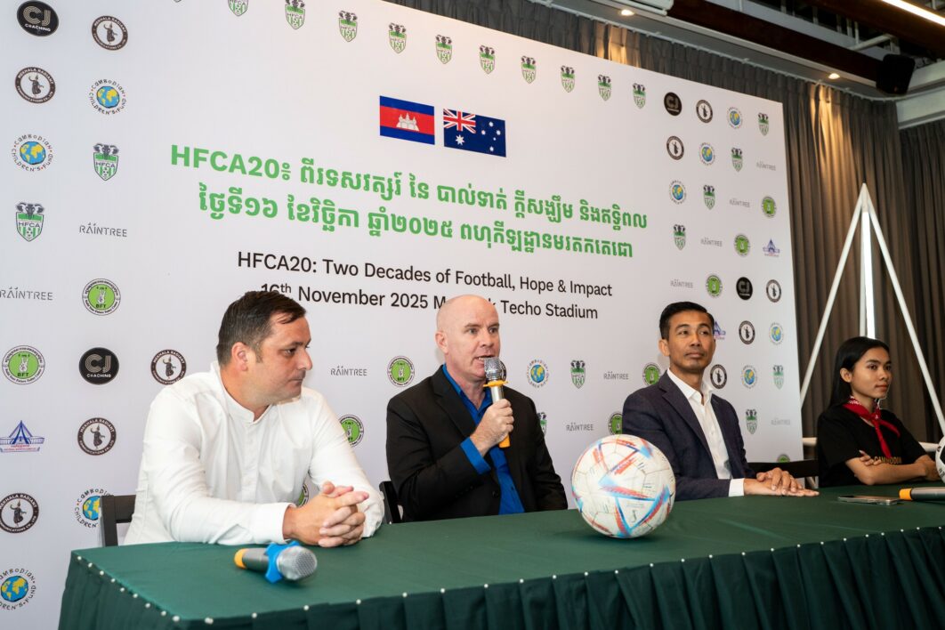 ព្រឹកថ្ងៃទី៧ ខែតុលា ឆ្នាំ២០២៥ អង្គការកម្ពុជាអូស្ត្រាលីបាល់ទាត់រីករាយ (HFCA) បានធ្វើសន្និសីទសារព័ត៌ប្រកាសពីការរៀបចំពិធីគម្រប់ខួប ២០ឆ្នាំនៅកម្ពុជាក្រោយធ្វើសកម្មភាពសប្បុរសធ៌ជួយដល់ជីវភាពកុមារ