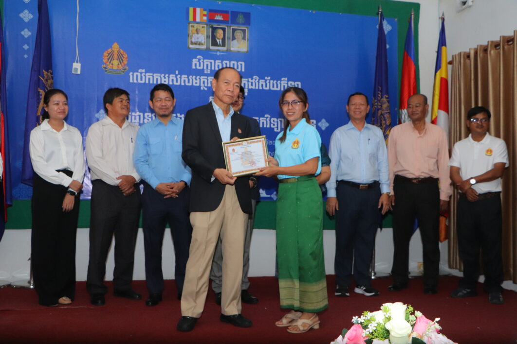 ឯកឧត្ដម កែ ប៊ុនខៀង រដ្ឋលេខាធិការក្រសួងអប់រំ អញ្ជើញចូលរួមជាកិត្តិយសក្នុងពិធីបិទរៀបចំសិក្ខាសាលាលើកកម្ពស់សមត្ថភាពស្ត្រីក្នុងវិស័យកីឡាស្តីពី “មូលដ្ឋានគ្រឹះក្នុងការប្រើប្រាស់បច្ចេកវិទ្យាព័ត៌មាន” ដែលមានរយៈពេល ៥ ថ្ងៃនៅវិទ្យាស្ថានអប់រំកាយ និងកីឡា។