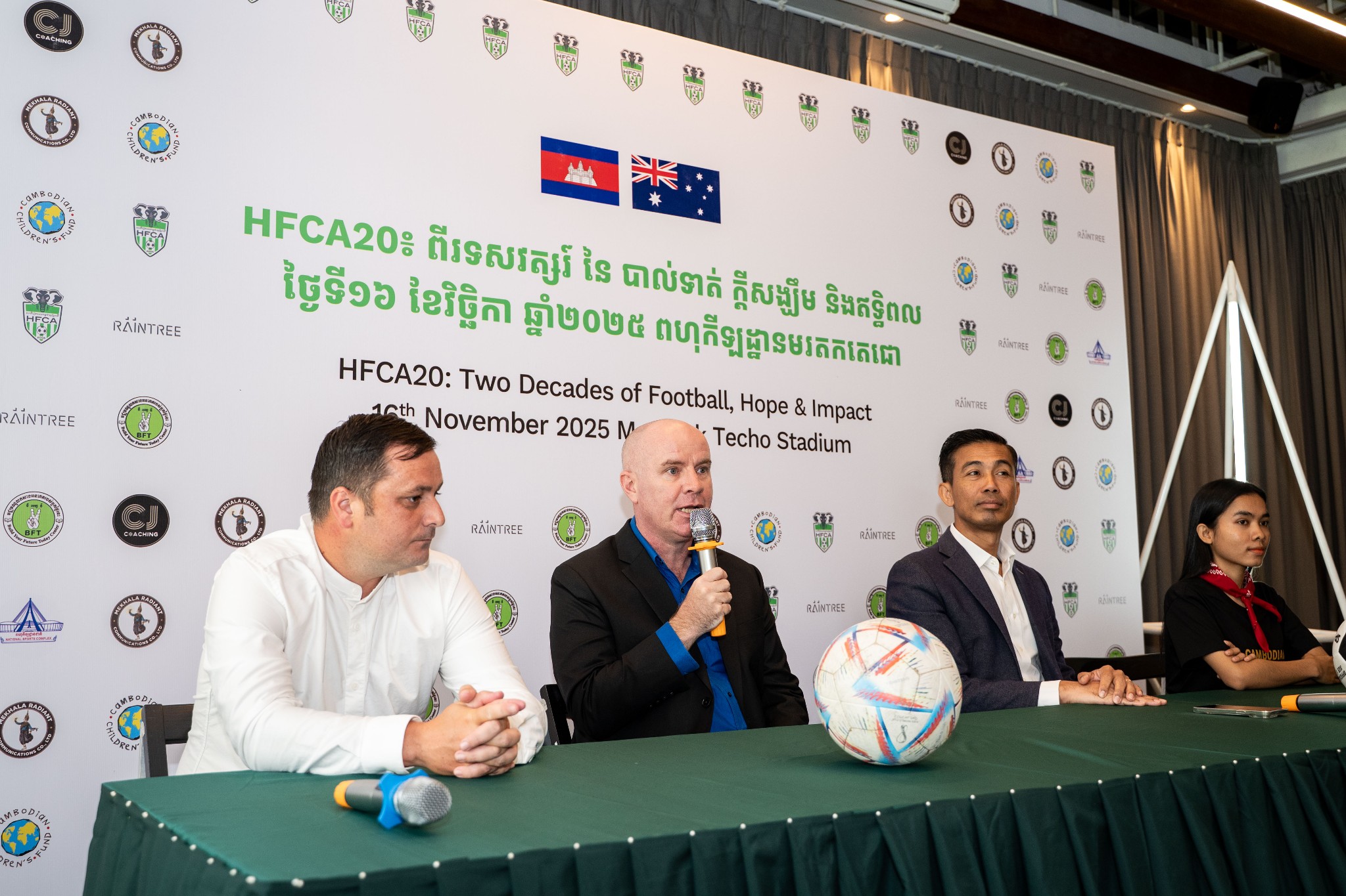ព្រឹកថ្ងៃទី៧ ខែតុលា ឆ្នាំ២០២៥ អង្គការកម្ពុជាអូស្ត្រាលីបាល់ទាត់រីករាយ (HFCA) បានធ្វើសន្និសីទសារព័ត៌ប្រកាសពីការរៀបចំពិធីគម្រប់ខួប ២០ឆ្នាំនៅកម្ពុជាក្រោយធ្វើសកម្មភាពសប្បុរសធ៌ជួយដល់ជីវភាពកុមារកម្ពុជាជៀសផុតពីទុក្ខលំបាក ងាកតស៊ូរៀនសូត្រ និងលេងកីឡាបាល់ទាត់។